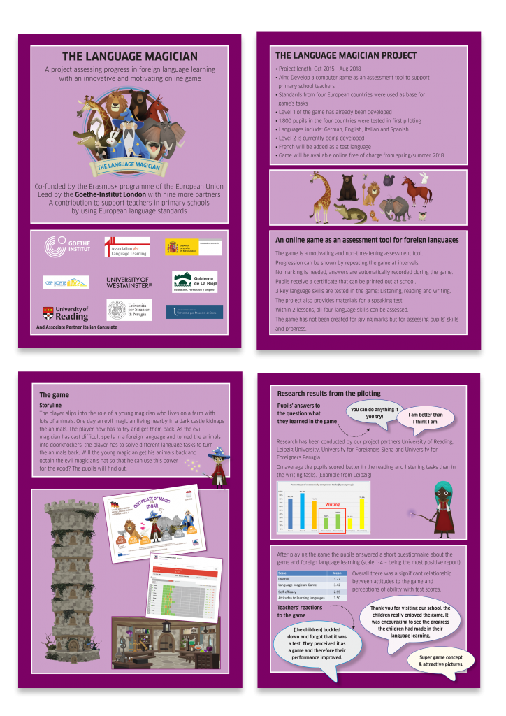 The Language Magician is a project co-funded by the Erasnus + programme of the EU. It is an assessment tool for primary schools in the form of a computer game for learning foreign languages.